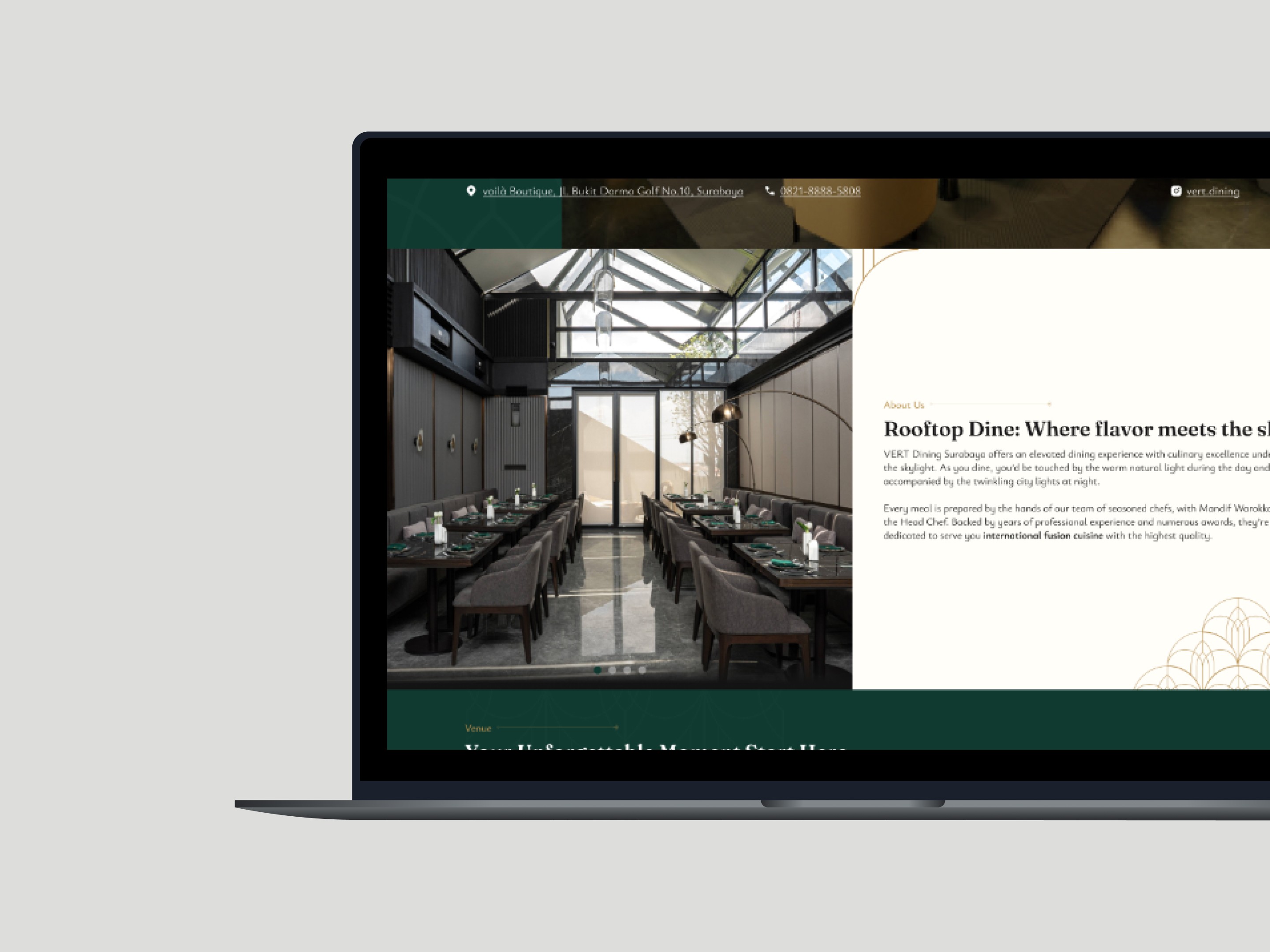Potential customers may find it challenging to understand the unique luxury experience Vert.ID offers without a dedicated platform showcasing its elegant ambiance, curated menu, and premium dining services. To attract and engage these customers, there’s a need to visually and descriptively communicate what sets Vert.ID apart from other restaurants.