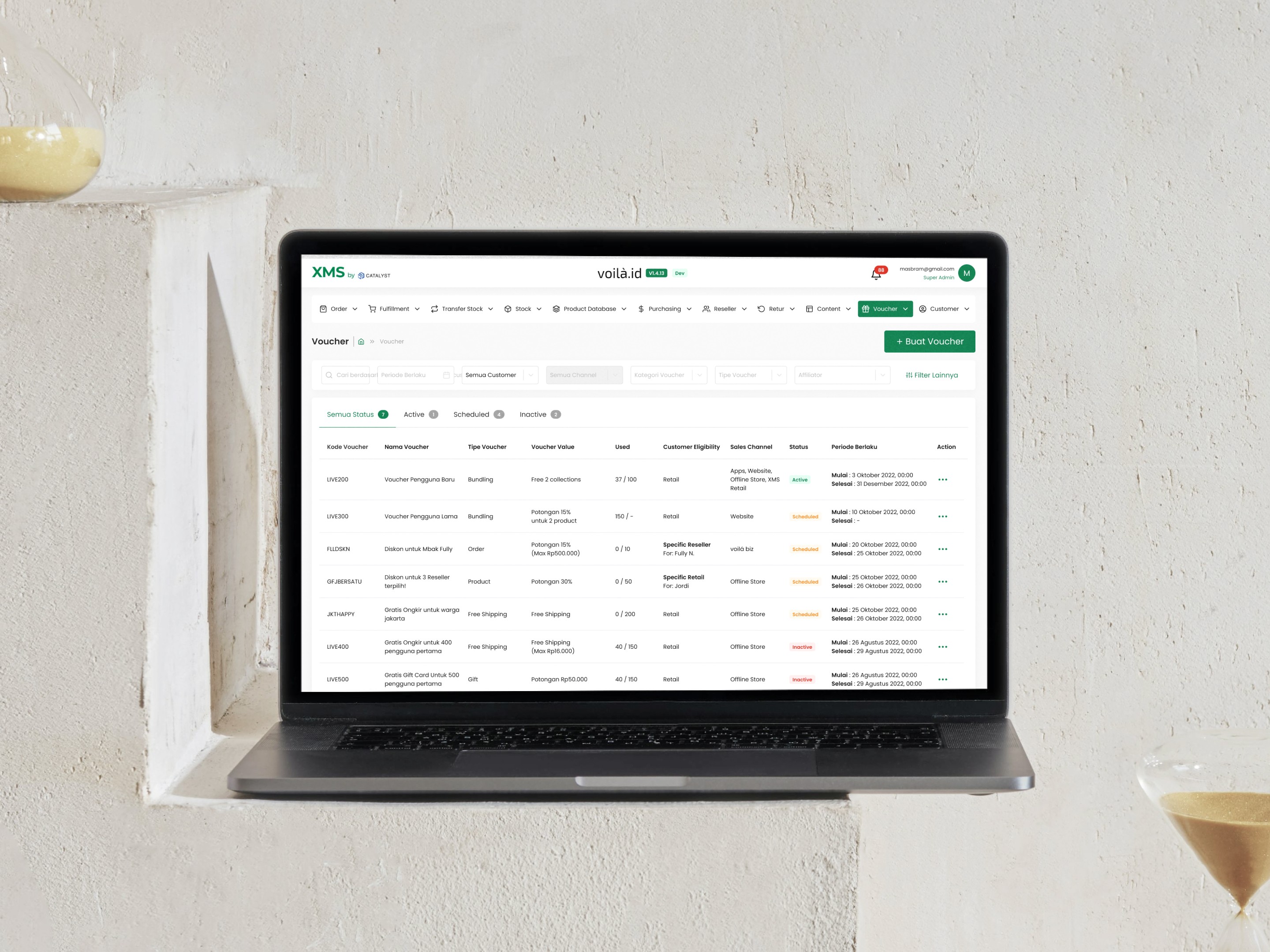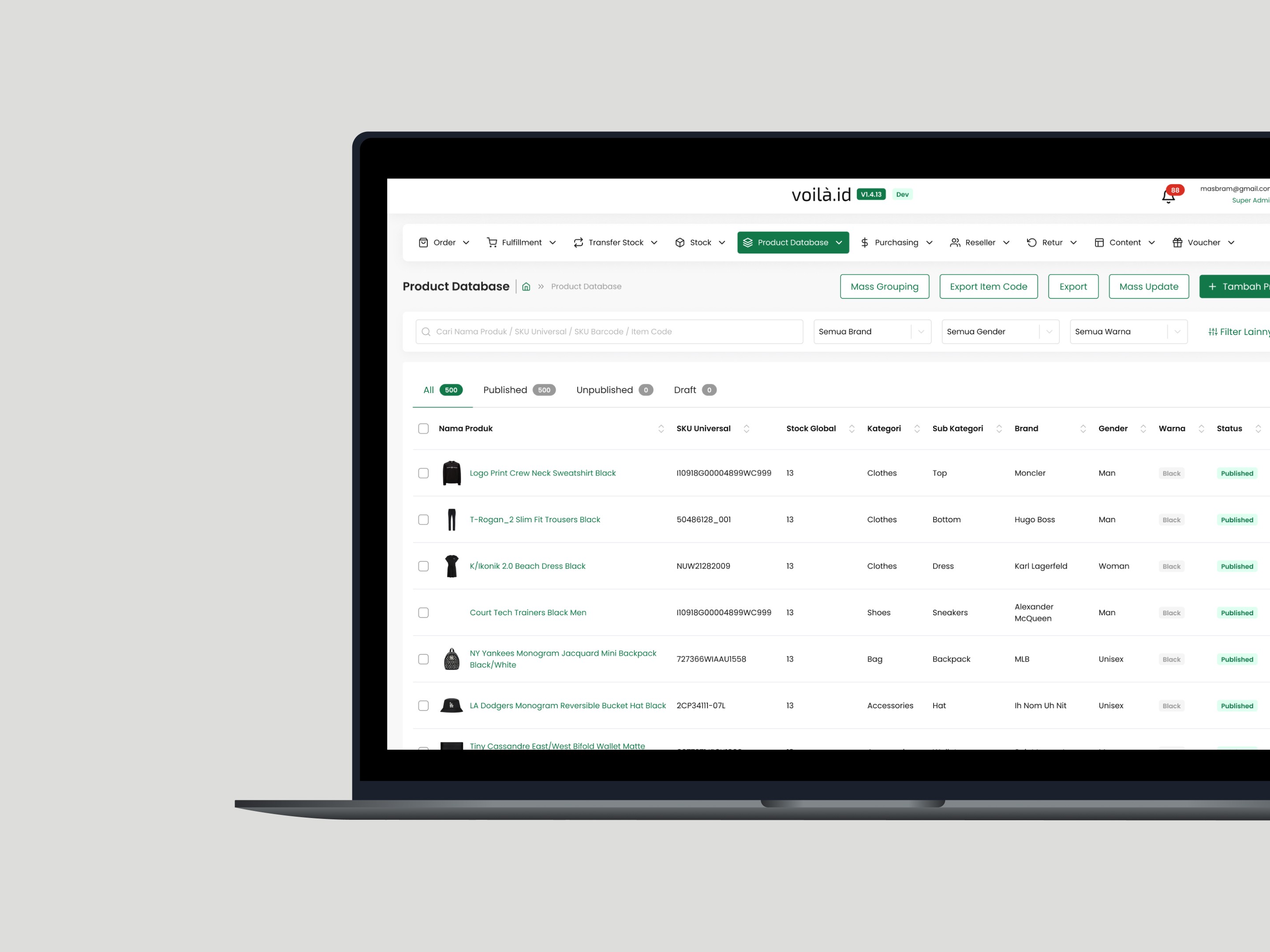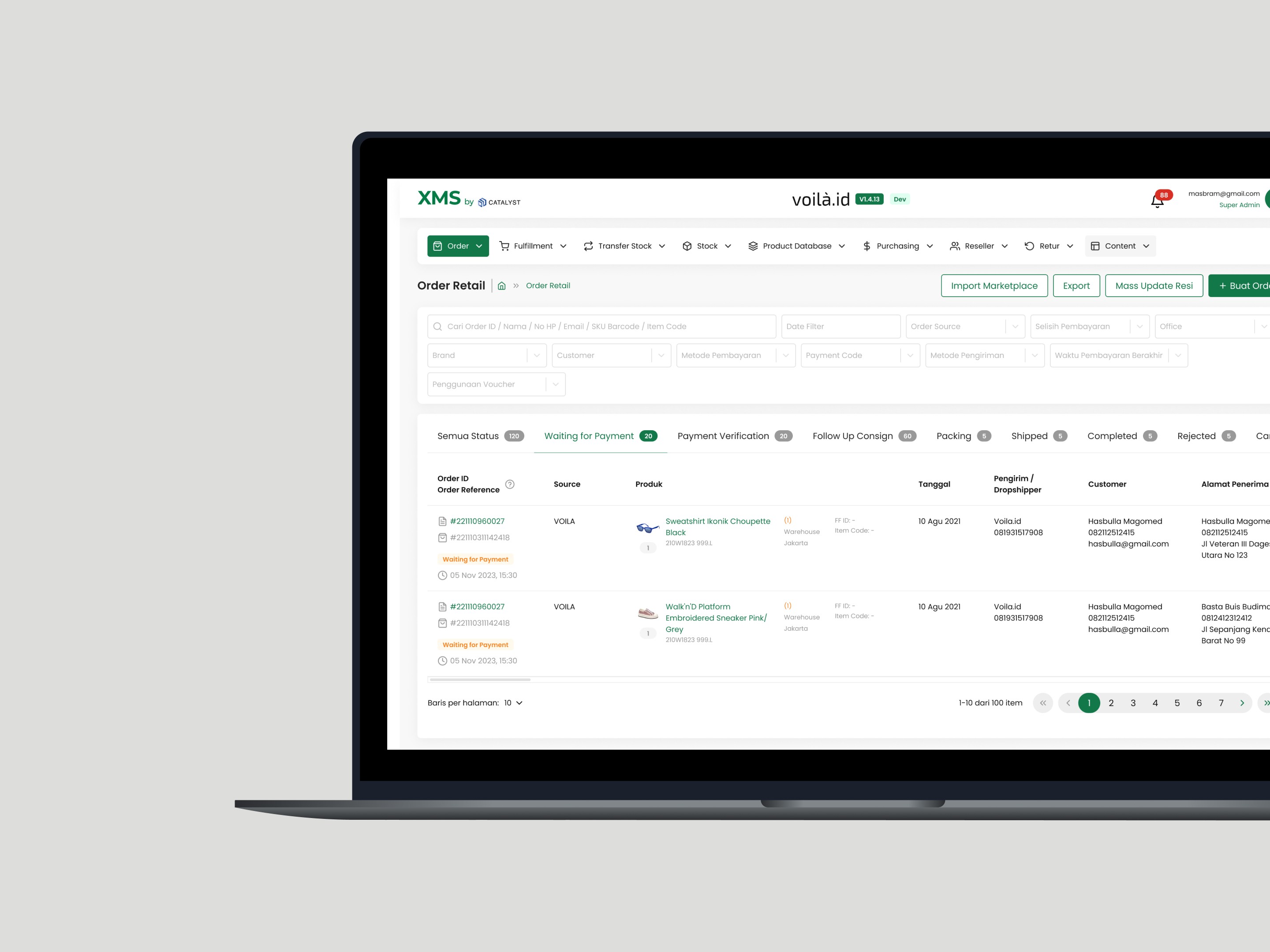 XMS Voilà.id is an internal admin tool designed to streamline the management of products, orders, users, and other administrative tasks. This system helps Voilà.id's team efficiently monitor and update product listings, process orders, and manage user accounts. With a user-friendly interface, XMS improves the overall operational workflow by centralizing essential administrative functions, allowing the team to quickly make decisions and ensure smooth business operations.